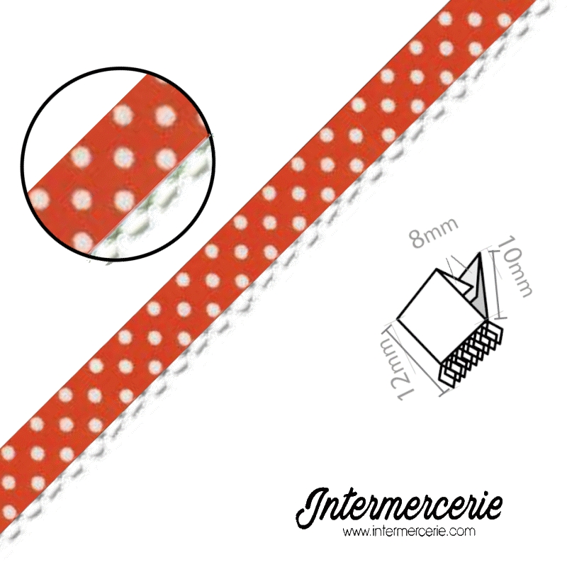 Biais picot imprimé 12mm posé, idéal pour vos bordures en habillement ou en décoration intérieure.